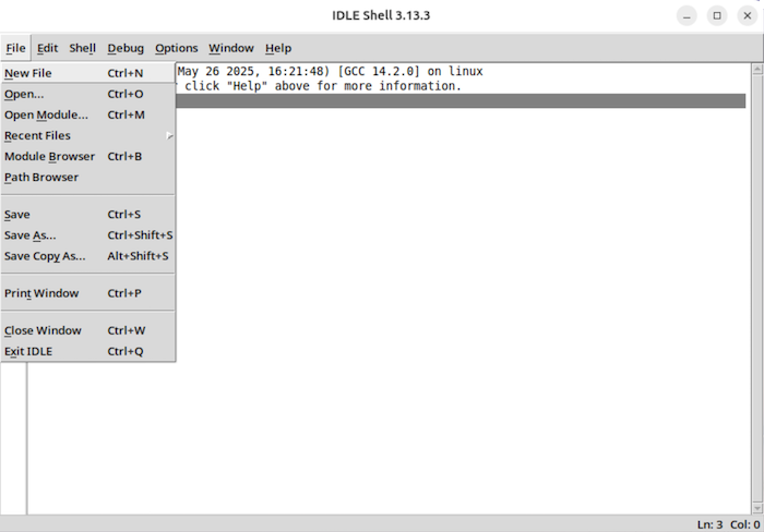 File >> Exit IDLE. Cierra todas las ventanas y finaliza el programa.
