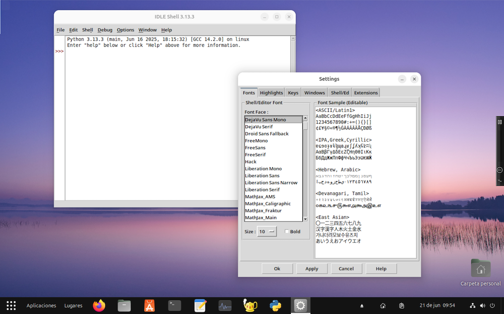 El comportamiento de IDLE se puede personalizar pulsando en el menú Options >> Configure IDLE. En un ordenador Mac, hay que pulsar en el menú IDLE >> Preferences.
