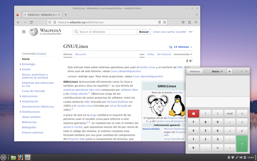 - dos programas ejecutándose en sendas ventanas, el navegador web y una calculadora