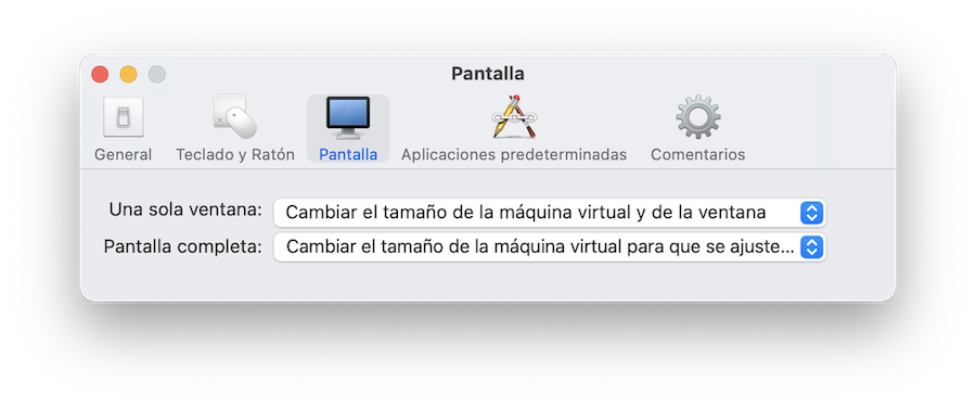 La resolución del escritorio virtual se ajustará al tamaño de la ventana, pero a veces esto no se comporta como a nosotros nos gustaría. Podemos configurar por separado el comportamiento de la máquina en dos situaciones distintas, cuando el escritorio se muestra en una ventana de la máquina física, o cuando ocupa toda la pantalla: