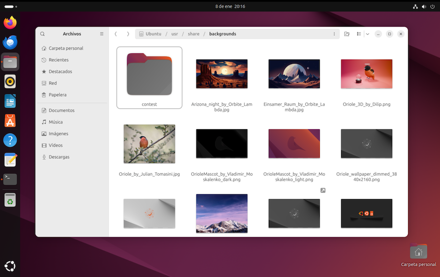 del gestor de archivos, por ejemplo, las imágenes de fondo de escritorio que se