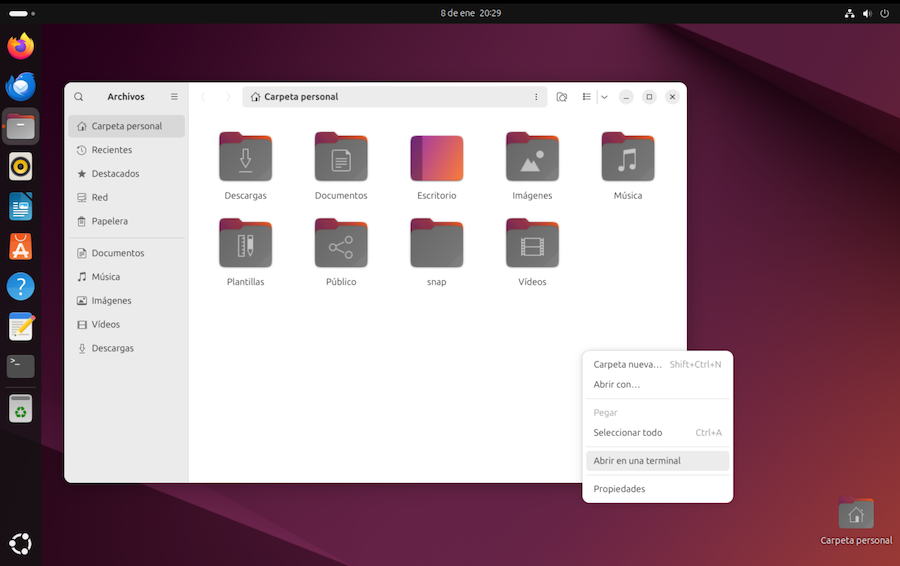 directorio actual comenzará siendo la carpeta principal del usuario, ubicada