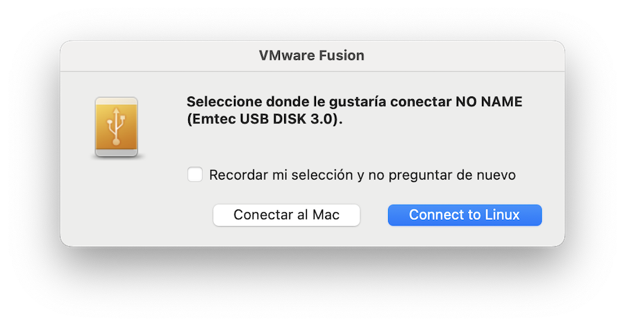 Hoy en d铆a, la mayor铆a de dispositivos que podemos conectar a nuestro ordenador, discos duros externos, impresoras, etc, suelen enchufarse a un puerto USB. Si tenemos una m谩quina virtual en marcha, al conectar un dispositivo, VMWare nos preguntar谩 a que m谩quina se debe asignar, si a la f铆sica o a la virtual: